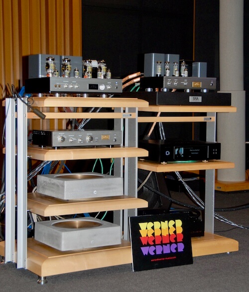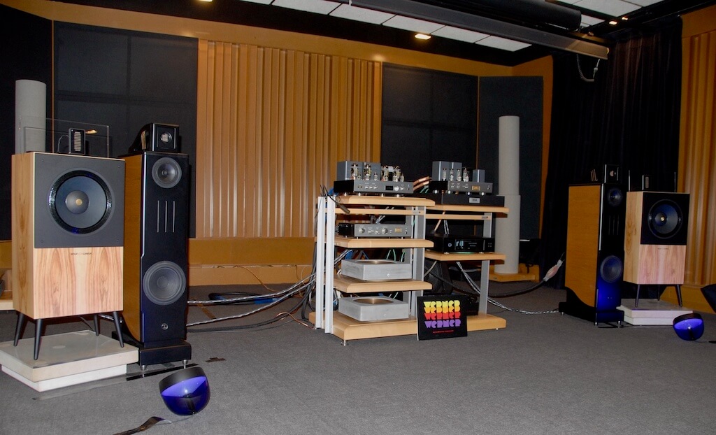 Y llegamos ya a la hora de la verdad, una “verdad” a cuya certificación contribuyó la muy ecléctica selección de música preparada por Xavi Casellas. Música de calidad en todos los casos, aunque en cierto modo mayoritariamente “clásica”, un poco al gusto de los asistentes, aunque esto último es una apreciación personal. No pretendo en ningún momento comparar los dos equipos, porque, sinceramente, eran bien diferentes en algunos aspectos al tiempo que bien similares en su espíritu, que no en vano compartían fuente y “filosofía” en cuando a electrónicas de control y amplificación. A mí personalmente me gustó más, aunque por muy poco, el Equipo 1, probablemente por la mayor profundidad de la respuesta en graves, que me pareció absolutamente “redonda” -de hecho, perfecta si nos atenemos a las dimensiones de las cajas- desde todos los puntos de vista y la superior definición en la zona alta, característica esta última a la que soy particularmente sensible y que en las WOLF VON LANGA estaba garantizada por un tweeter magnetostático de emisión dipolar. Resulta interesante al respecto comentar que esta singular caja acústica ya llamó la atención en 2018 a más de un periodista especializado como consecuencia de la excepcionalidad de su sonido atacada por electrónicas de Air Tight. Pasando al Equipo 2, aquí lo que me impresionó desde el primer momento fue la naturalidad extrema de la zona media, fruto en buena medida de la configuración de 3 vías de las Sigma Acoustics M15, aunque eché un poco en falta, reconozco que sólo en algunas grabaciones, la mayor transparencia de las WVL12639 SON. Efectuadas estas puntualizaciones, he de subrayar que la dinámica era excelente en los dos casos y que la estructuración de la escena sonora me pareció espléndida, sobre todo en anchura y en altura, aunque en lo que concierne a la profundidad había una dependencia considerable de la toma de sonido de cada grabación. En cualquier caso, tener a nuestra disposición una presentación sonora casi holográfica, por duplicado, con electrónicas de potencia moderada y en una sala tan opulenta -con toda seguridad mucho mayor que la del grueso de potenciales compradores de los sistemas en liza- me pareció un lujazo en toda regla. ¡Buen trabajo, Werner!