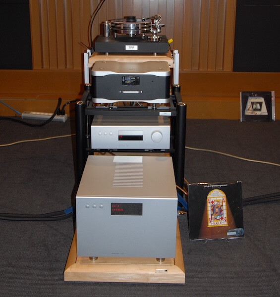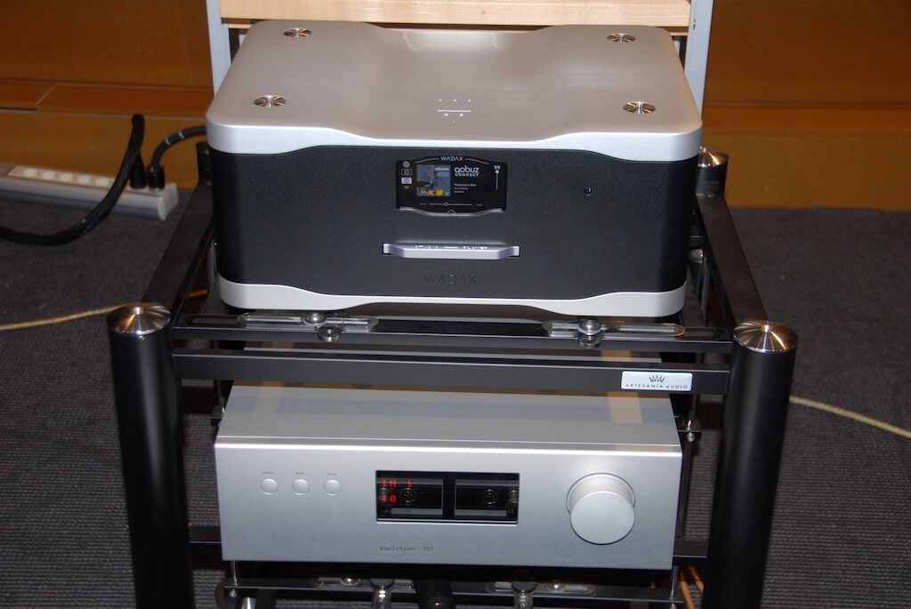 De auténtica proeza de la tecnología, “hipertécnico” si lo desean, habría que calificar el otro componente “Made in Spain” de élite que hay en el equipo que protagoniza la presente crónica: la “multifuente” digital integrada -por aquello de que utiliza un sólo chasis- Studi Player de Wadax. He tenido la oportunidad y el placer de seguir casi desde el primer día el trabajo de Javier Guadalajara, alma mater de la compañía madrileña, y debo reconocer que tiene bien merecido el actual lugar que ocupa en esa “élite de la élite del High End” a la que antes he hecho referencia. Con una estética absolutamente deslumbrante que en el peor de los casos no deja a nadie indiferente, este combinado de lector digital clásico y moderno abruma por su sofisticación pese a no ser “lo máximo de lo máximo” que ahora mismo nos propone Wadax. Tomen nota: 40 placas de circuito impreso individuales, más de 4.500 componentes discretos, corrección de errores de desarrollo propio vía musicIC 3 con aritmética de 128 bits, diseño completamente doble monofónico y balanceado de los subsistemas digitales y analógicos, alimentación con 30 etapas de regulación local y 5 de corriente continua y un largo etcétera del que habría que destacar la posibilidad de expansión mediante la adición del reloj de sincronismo externo de “jitter” ultrabajo -20 femtosegundos- Studio Clock, el bloque de alimentación Studio PSU o el cable Akasa DC Studio. Dejando aparte una bandeja de transporte mejorable, el Studio Player me parece sencillamente impresionante… acojonante si tenemos en cuenta que es “de aquí”.