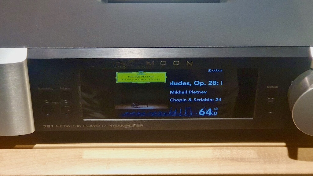 Y de la tecnología más tradicional, atemporal me atrevería a decir, pasamos a la “high tech” de la fuente empleada: el streamer incluido en el preamplificador –“solid state” y con arquitectura analógica- MOON 791 de la canadiense Simaudio. Estamos ante una elegantísima e inmaculadamente construida electrónica de última generación que figura ahora mismo en la élite de los productos de su clase y de la que a grandes rasgos hay que apuntar un módulo digital “Hi-Res” a la última -compatible con archivos PCM hasta 384 kHz y DSD hasta DSD512- con procesado de señal de señal concebido para maximizar la precisión tonal, y, en el ámbito del software, la plataforma MiND 2, homologada Roon Ready, que permite una reproducción extremadamente fluida desde servicios de música online y bibliotecas locales.