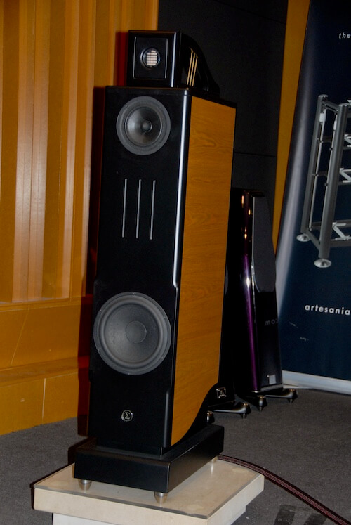 Empecemos, pues, comentando brevemente las M15, unas columnas de personalísimo diseño en las que hay que destacar en primer lugar una construcción claramente encaminada, mediante la calculada combinación de materiales y grosores, a maximizar la rigidez estructural -cada caja pesa sus buenos 40 kilos- y minimizar las resonancias. Pero lo que sin duda llama más la atención de este sistema bass-reflex de 3 vías y 3 altavoces es el transductor de agudos AMT -“Air Motion Transformer” o “Transformador del Movimiento de Aire”, una tecnología para restituir las frecuencias altas del espectro que lleva en activo hace más de medio siglo y en la última década ha vuelto con fuerza en el ámbito del High End- que monta en su zona superior con el añadido de que su dispersión en el plano vertical se puede ajustar para adaptar la escena sonora a las dimensiones de sala de escucha. Al AMT le acompañan un altavoz de medios con diafragma de un compuesto de fibras de 127 mm (5”) firmado por la danesa Scan-Speak y un woofer con cono de estructura sándwich de papel endurecido de 210 mm (8’5”) de la misma marca. Gracias a esta configuración y a la generosa, pero razonable, envergadura del recinto, la M15 exhibe una respuesta en frecuencia casi perfecta -28-30.000 Hz, +/-3 dB- y un “mix” sensibilidad/impedancia -89’5 dB/8 ohmios- que en principio la hace muy manejable, aunque al respecto hay que saber que el uso de una circuitería de filtrado de primer orden -corte de 6 dB/octava- obliga, a cambio de linealizar la crítica fase, a tener una buena reserva de potencia dinámica.