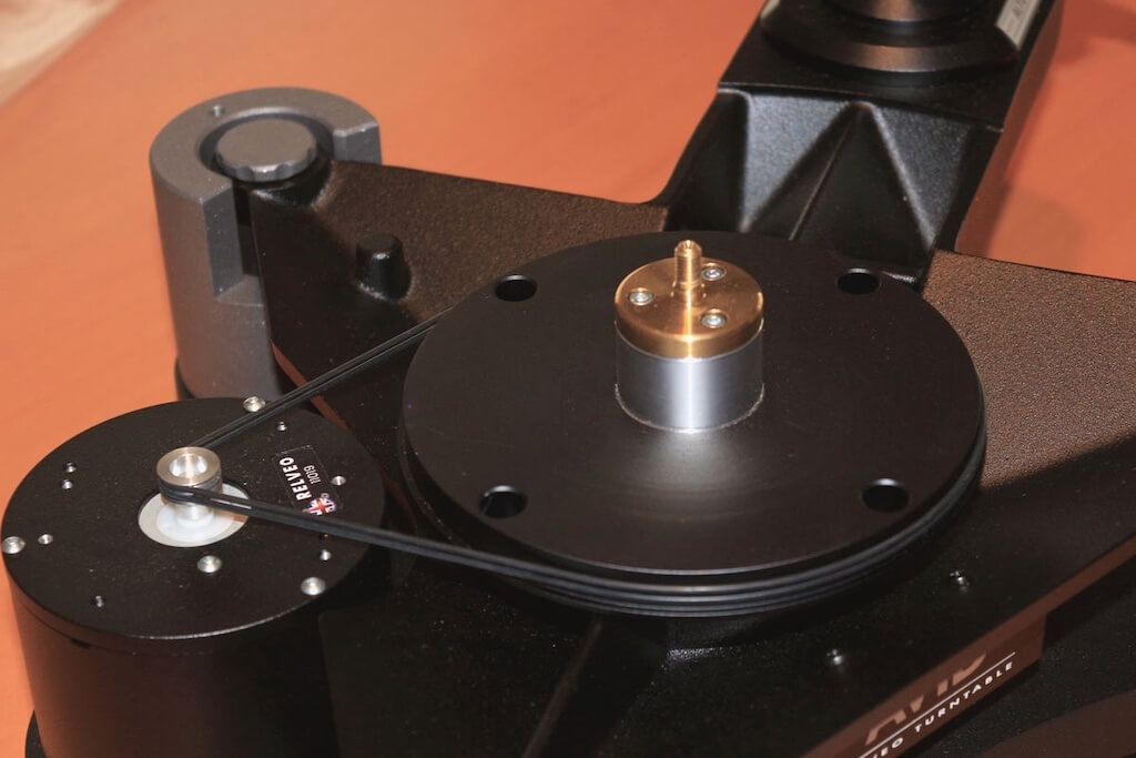 Siempre leí que los tocadiscos AVID son famosos por su obsesión con la gestión de las vibraciones: mientras otras marcas intentan absorber las vibraciones con gomas, muelles o materiales blandos, AVID las «canaliza» fuera del disco. Es la misma filosofía que seguía la desaparecida Nottingham Analogue y es mi apuesta también para la reproducción de vinilos (tuve un Spacedeck muchos años). El “clamp” que prensa el disco sobre el plato es parte clara de esta ecuación, y en el Relveo también lo son el motor de buen tamaño (más par) y preciso control electrónico (alimentación aparte, cómoda para cambiar de velocidad también). Me llamó la atención el uso de dos correas de tracción, cuando otros fabricantes intentan minimizar la influencia del motor usando una sola, incluso fina y lejana: esto demuestra que AVID “confía” en su motor y el control de las vibraciones que pudieran transmitirse hacia el plato.