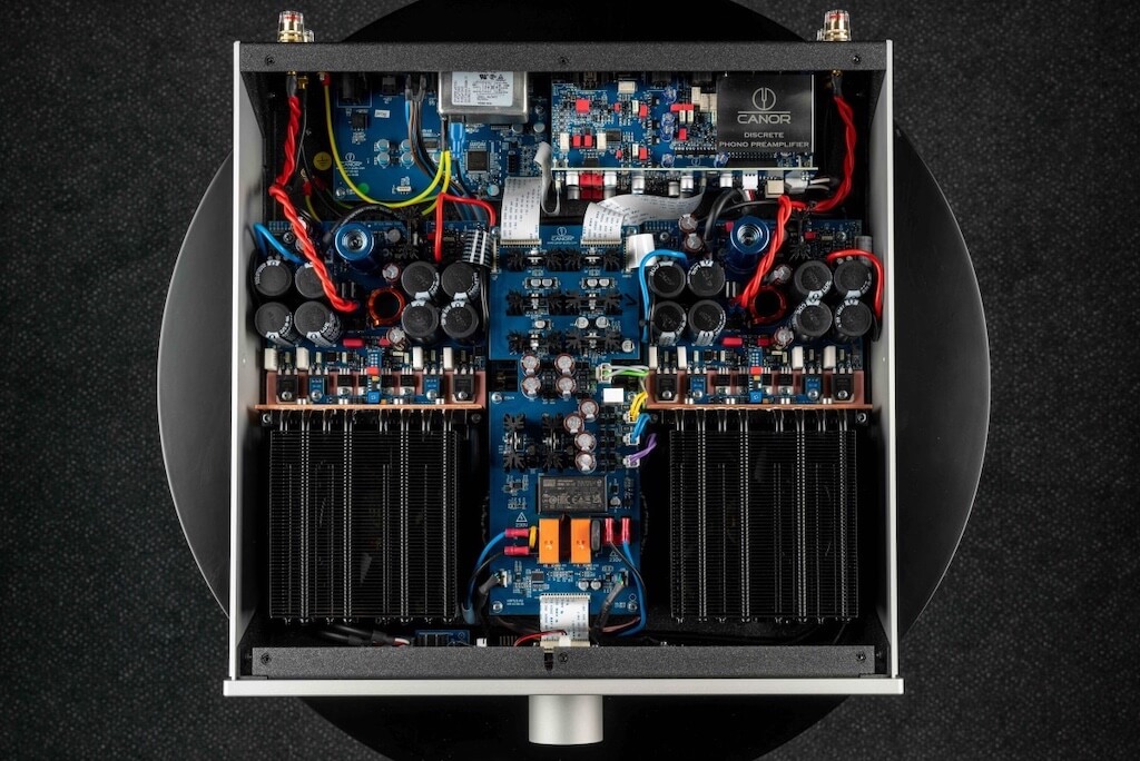 - Cuatro productos en una sola carcasa: un amplificador de potencia híbrido clase A/AB, un preamplificador de phono, un amplificador de auriculares y un DAC.