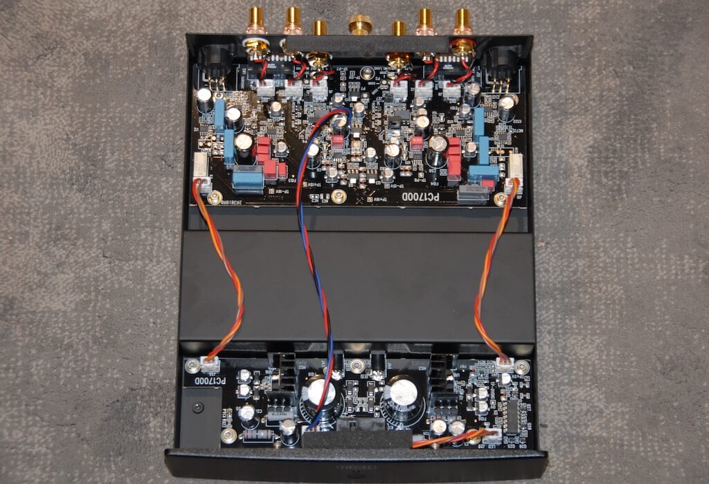 Igual de relevante es la configuración empleada en las secciones encargadas de tratar las señales procedentes de cápsulas MM y MC por cuanto las dos se basan en transistores JFET discretos de nivel de ruido ultrabajo. De los dispositivos en cuestión es bien sabido que su particular estructura física les permite -no hablo de una entelequia, sino de algo objetivo que se obtiene analizando lo que se conoce como circuito eléctrico equivalente- exhibir una tímbrica más cálida –“valvulera”, para entendernos- que sus homólogos bipolares manteniendo a la vez un ruido de fondo extraordinariamente bajo. En el caso de la sección MC, Hegel apunta que se utilizan cuatro de los citados JFET conectados en paralelo a fin de maximizar el nivel de silencio y detener cualquier posible realimentación de corriente a las bobinas de la cápsula fonocaptora. En cuanto a las fuentes de alimentación, señalemos que las fuentes de alimentación correspondientes a las etapas de ganancia MM y MC utilizan transistores discretos, en este caso bipolares, para, insistimos, mantener el ruido bajo mínimos, mientras que la alimentación global del conjunto emplea una fuente lineal equipada con un transformador con núcleo de placas de grano orientado hecho a medida.