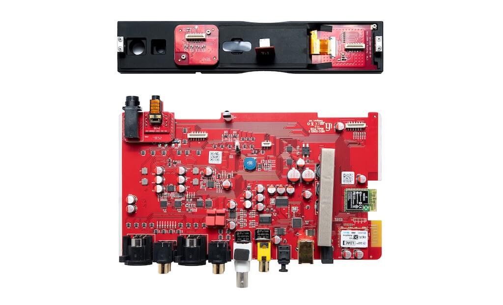 Penetrando ya en las interioridades del NEO iDSD 3, les invito en primer lugar a que echen un vistazo a la ficha técnica que figura, como siempre, al final del artículo, y, a continuación, la fotografía de la placa de circuito impreso principal suministrada por el fabricante puesto que para acceder a la misma hubiera sido necesario desmontar nuestro invitado por completo. Puestos a destacar elementos distintivos, yo me quedaría con la topología doble monofónica -de nombre PureWave- y el uso de componentes mejorados con respecto a realizaciones pretéritas de iFi Audio: amplificadores operacionales de nueva factura con tasa de distorsión armónica total+ruido ultrabaja, condensadores de la Serie MK2S de WIMA (para reducir la distorsión y suavizar la curva de respuesta en frecuencia) y condensadores de polímero de calidad superior y alta tolerancia al rizado –“ripple”- para incrementar la limpieza de la señal de alimentación. Idéntico esmero encontramos en la configuración de la crítica sección digital o DAC, plasmada en una etapa hecha a medida protagonizada por un convertidor D/A de la estadounidense Burr-Brown -integrada en Texas Instruments- con trayectos de señal separados para los flujos de datos PCM y DSD. Una solución tan elegante como propia de creaciones mucho más onerosas que habla alto y claro sobre el purismo imperante en iFi Audio.