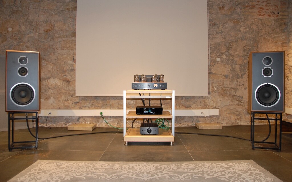 Probé las Model Five en una de las salas “estándar” -la mejor en la que a acústica se refiere- del establecimiento especializado barcelonés Werner acompañadas por un amplificados integrado a válvulas -la versión equipada con las espléndidas KT150 para ser exactos- Icon Audio Stereo 60, un “transporte” para streaming Eversolo T8 y un procesador digital de audio -DAC- Audio Analogue AA-DC, con cableado a cargo de Wires 4 Music en cajas acústicas e interconexión y Zanden en red. Ofició como maestro de ceremonias Xavi Casellas, quien, además de brindarnos una de sus muy eclécticas “playlists”, decidió -¡la sala manda!- celebrar el grueso de la audición con las KLH montadas en unos soportes de suelo diferentes a los suministrados de serie.