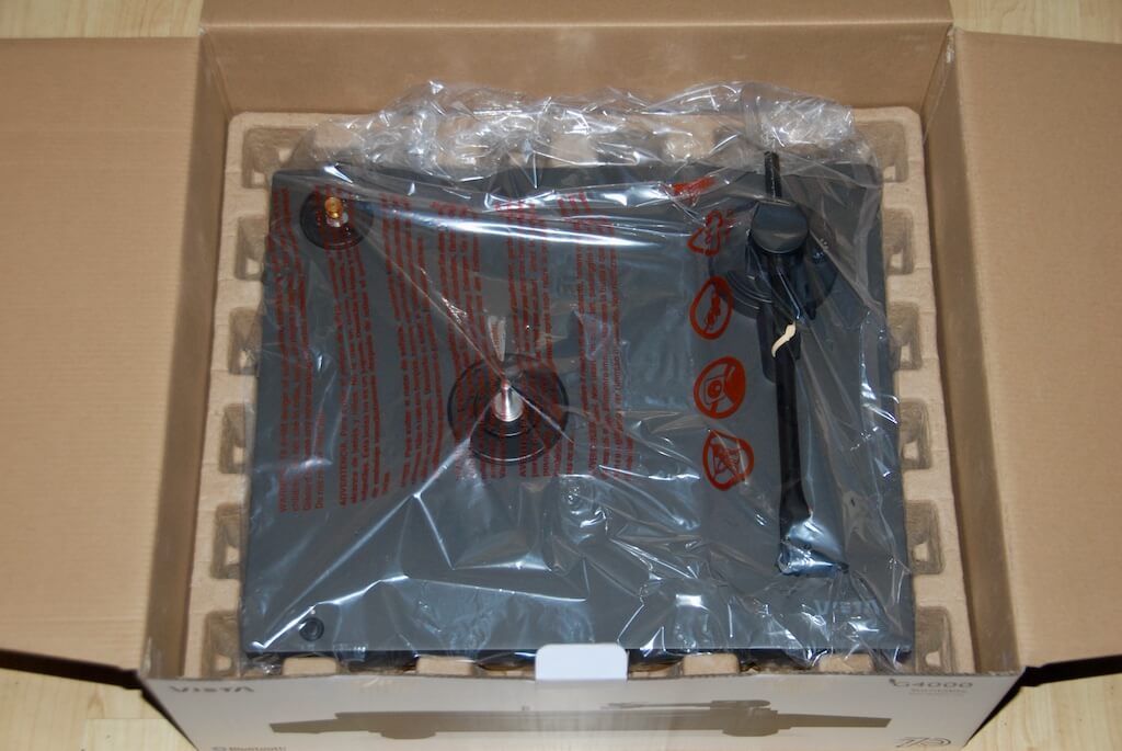 La referencia al Ocnoson me permite conectar, probablemente por la “G” de su nombre, con nuestro invitado, del que ya les adelanto que está muy bien parido en todos los sentidos. Para empezar, su embalaje es irreprochable, hasta el punto de que me he permitido tomar unas cuantas instantáneas de mi particular “unboxing experience”. Todo está muy bien pensado, con cables de calidad y los componentes “sensibles” -salvo la correa, que acompaña a los cables en la misma bolsa- embalados por separado para que no sufran daños por contacto. El plato en sí, recuerda, por su minimalismo, y tal como decía al principio, a los diseños más clásicos de la británica Rega. En este sentido, es evidente que los diseñadores del Vieta han priorizado el mantenimiento de unas líneas hiperpulcras por encima de consideraciones más “funcionales”, ya que el cambio de velocidad, por ejemplo, se realiza mediante un conmutador situado en la zona frontal inferior izquierda del chasis, mientras que la activación de la funcionalidad Bluetooth, también vía interruptor, aunque en este caso en la parte superior, es decir a la vista, de dicha zona. Por otro lado, la presencia de circuitería electrónica correspondiente a un previo de fono por un lado y a la conectividad Bluetooth por otro hace necesario un interruptor de puesta en marcha general, que se encuentra en el panel posterior junto a una salida con dos conectores RCA que suministra bien señales de fono, bien señales de línea, seleccionándose la opción preferida con un pequeño conmutador deslizante situado al lado de los mismos.