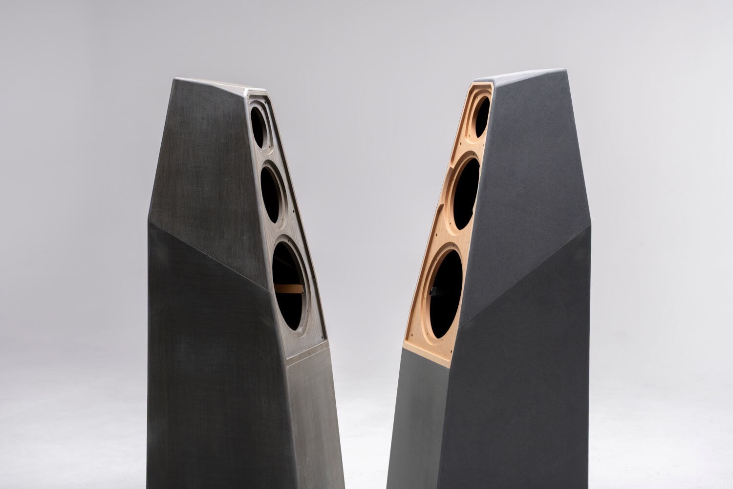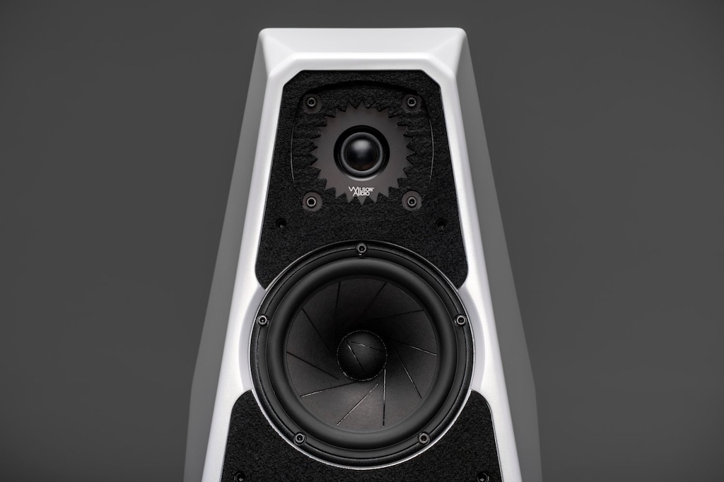 Complementado por el citado Material-X en todos sus paneles externos y en sus refuerzos estructurales, el recinto se beneficia de un incremento global de su rigidez mecánica que mejora el control de las vibraciones, “afila” la imagen espacial y consigue un ruido de fondo acústico extraordinariamente bajo. Por su parte, el también exclusivo Material-V se ha incorporado (inspirándose en el papel que desempeña en los sofisticados y efectivos “Acoustic Diodes” de Wilson Audio) en la zona inferior del recinto, justo en la interfaz con las puntas de desacoplo del mismo nombre. Esta innovadora técnica de aislamiento y control de vibraciones, bautizada con las siglas V-MCD, permite reducir adicionalmente el ruido de fondo, haciendo que la restitución musical en su totalidad brille por su profundidad y vitalidad. En el ámbito de los transductores, la nueva Wilson Audio exhibe una auténtica sinfonía de avanzados refinamientos compartidos con los modelos de élite de la firma americana. Es el caso del tweeter de cúpula textil “Convergent Synergy Carbon” (CSC), originalmente puesto a punto para la Alexx V o el “midwoofer” QuadraMag de 178 mm con imán de AlNiCo creado inicialmente para la formidable Chronosonic XVX, sumándose a los mismos un woofer con cono de pasta de papel de 203 mm.